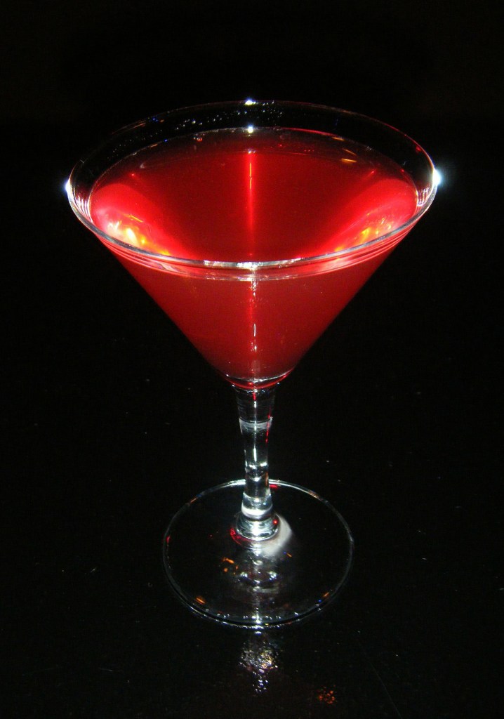The standard Sex-on-the-Beach recipe is vodka, cranberry juice, orange juice, and peach schnapps. So we fancied it up with cranberry gin, apricot liqueur instead of peach, and bergamot liqueur instead of orange.