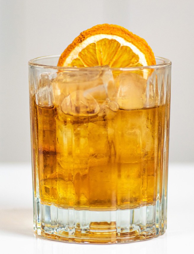 - Stir whiskey, sugar or syrup, and bitters together in a mixing glass with ice